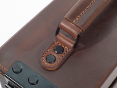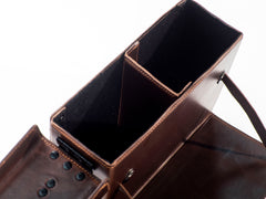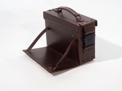 軍用弾薬ケースからインスピレーションを得たこのコンパクトな革製ボックスは、利便性と機能性を完璧に融合しています。
